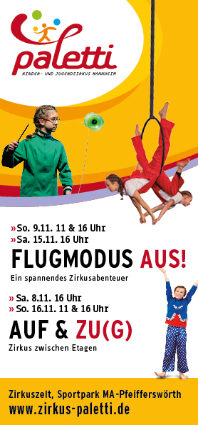 Herzlich Willkommen auf der Webseite des Kinder- und Jugendzirkus Paletti e.V. aus Mannheim.Seit 1997 machen wir zirkuspädagogische Angebote für Kinder ab einem Jahr, Jugendliche und Erwachsene in den verschiedensten Formaten in Mannheim und der Rhein-Neckar Region. Unser Zirkusgelände mit Zirkushalle und -Zelten befindet sich im Sportpark Mannheim Pfeifferswörth.